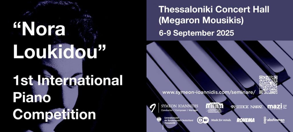 We are delighted to announce the 1st International “Nora Loukidou” Piano Competition – a tribute to the life and legacy of the distinguished pianist and educator Nora Loukidou. Renowned for her inspiring teaching and profound musical insight, Loukidou dedicated herself to training young pianists with passion and excellence. This international competition honors her memory and supports outstanding young talents from around the world.